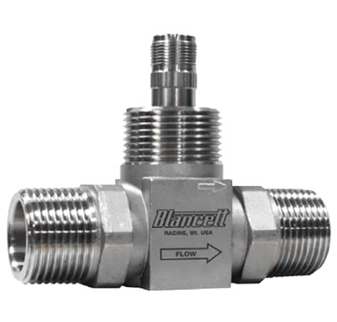 The Blancett 1100 turbine flow meter is designed to withstand the demands of the most rigorous flow measurement applications. It features a rugged 316 stainless steel housing and rotor support assemblies, CD4MCU stainless steel rotor, and abrasive-resistant tungsten carbide rotor shaft and journal bearings.