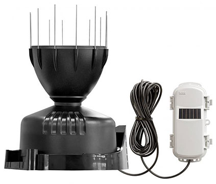 HOBOnet sensor measures in 0.01in increments, and includes bird spikes and locking debris screen to minimize interference.